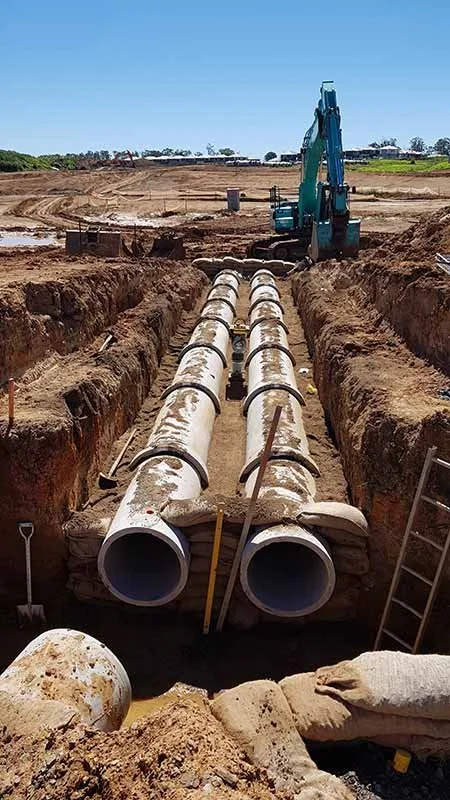 Our Projects / Retention Basins / Jerralong Basin Retention Basins Jerralong Basin Client: Blacktown City Council Scope: Dewatering and cleaning out of existing dams Bulk earthworks – Cut & fill works with GPS equipment Network of Bioretention basins with spillways and access tracks Installation of drainage system with headwall outlets and sandstone rip rap and dissipaters Install subsoil drainage and pits Installation of 3 GPT pits up to 6m deep including associated drainage lines Installation of Landscaping, fencing and signage around bioretention basins
